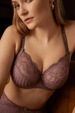 The best selling Madison bra from luxury European lingerie brand Prima Donna is a customer favourite for a reason. With three carefully constructed sections to its cups, the bra gives a beautiful shape to the bust whilst still providing fantastic support and unrivalled comfort. The bottom half of the cup is formed from slightly rigid fabric, whilst the top half is made of a more flexible lace, making the Madison the perfect bra for women with slightly fluctuating cup sizes. Satin Taupe is a brand new limited edition seasonal colour, merging the winter colour palette with a classic nude.Â