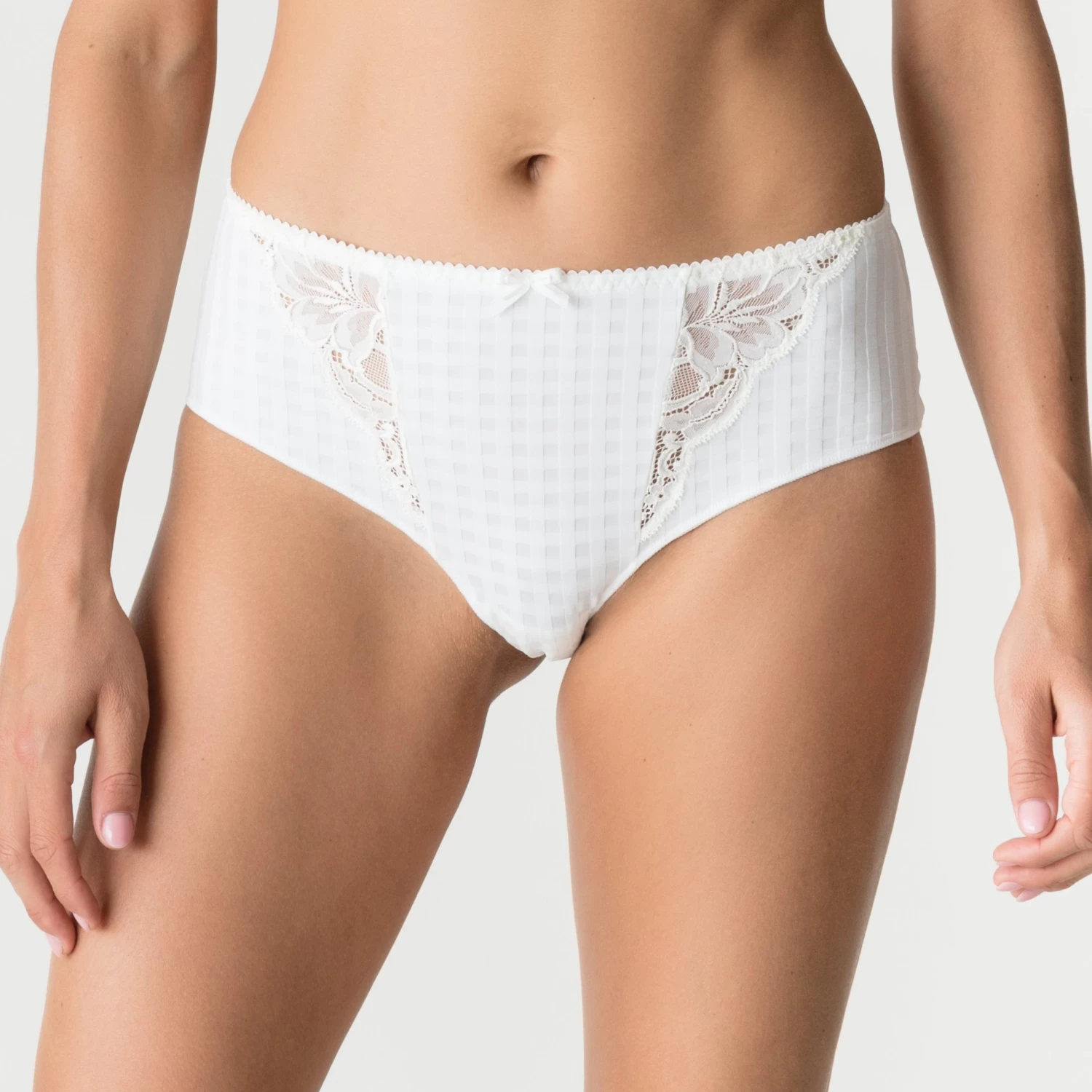These hotpants are the perfect pair for the Madison bra collection. The trendy hotpants style has just a touch of allure in a high cut rear. The check pattern is ever so comfortable, with inserts of lace at each hip.Â