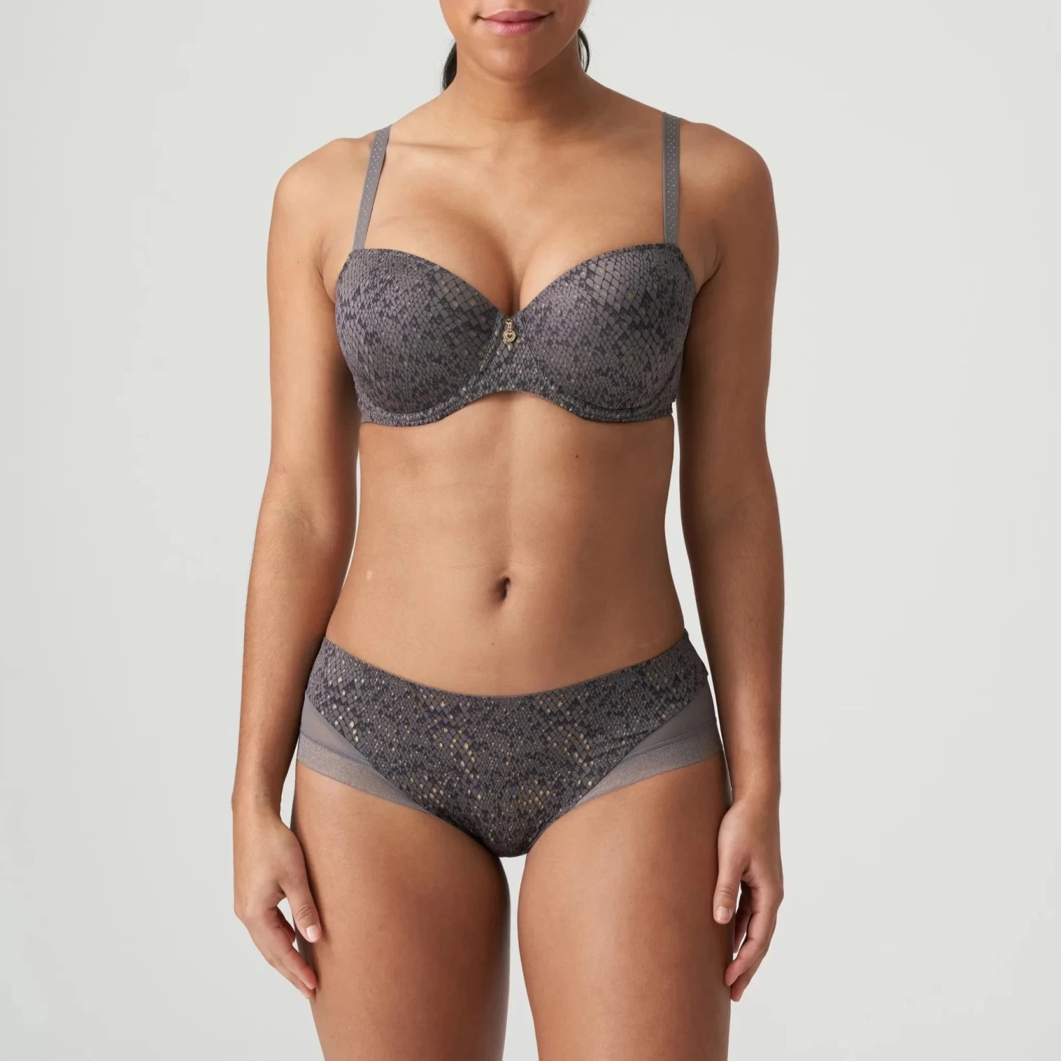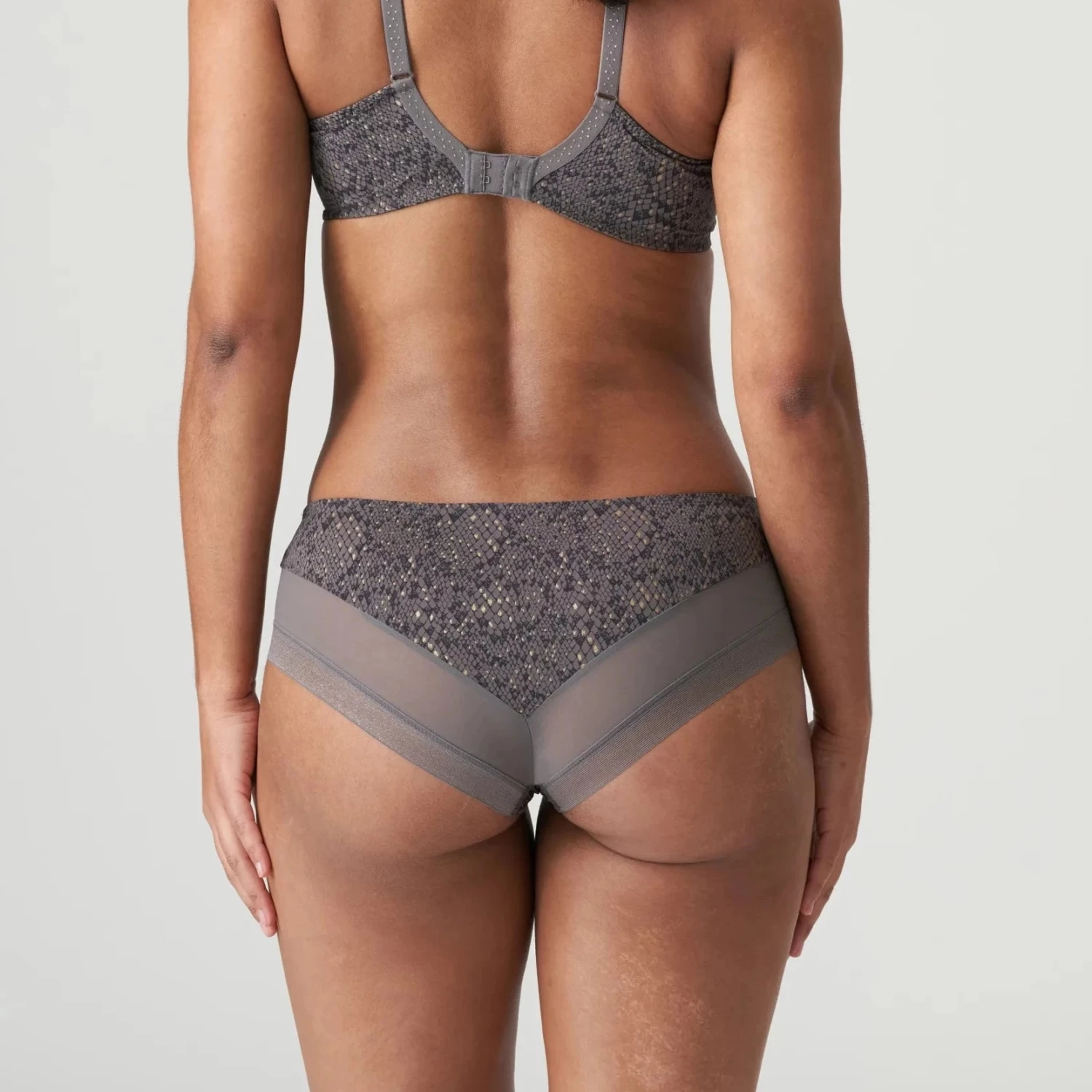 These fun Villemin Hotpants from Prima Donna feature a fun snakeskin print on a smooth and silky fabric, with flirty tulle detailing at the back. The Kitten Grey colourway is a flattering dark grey and black.