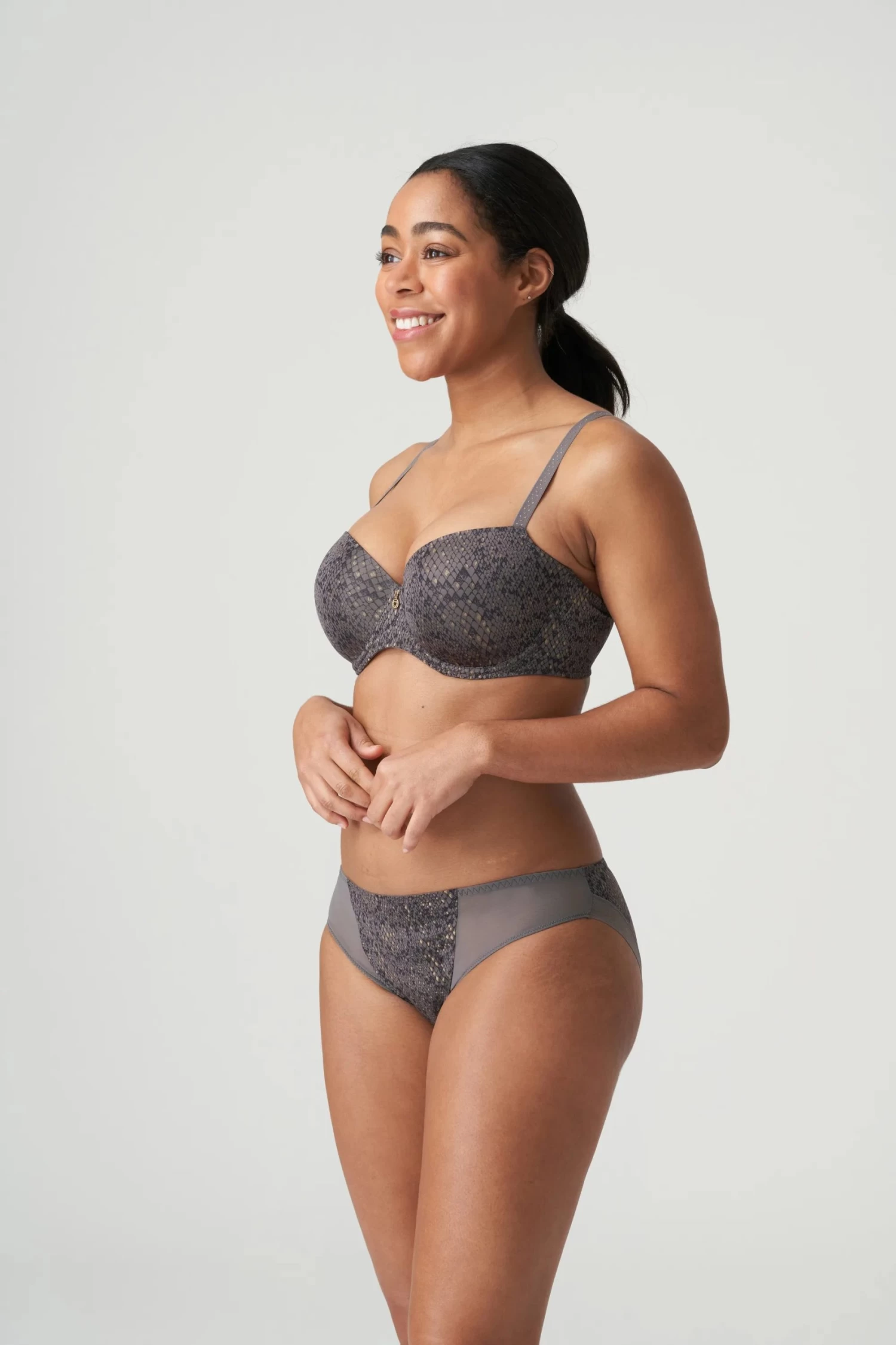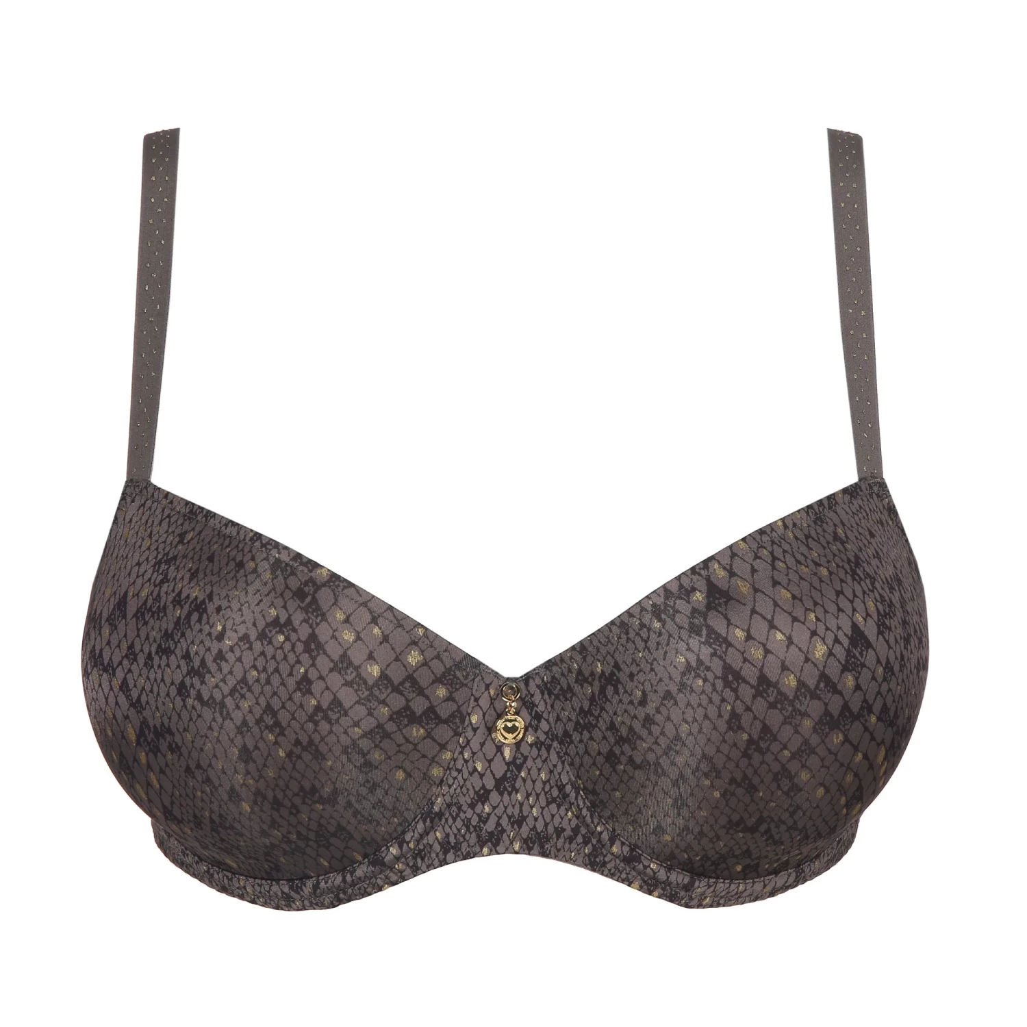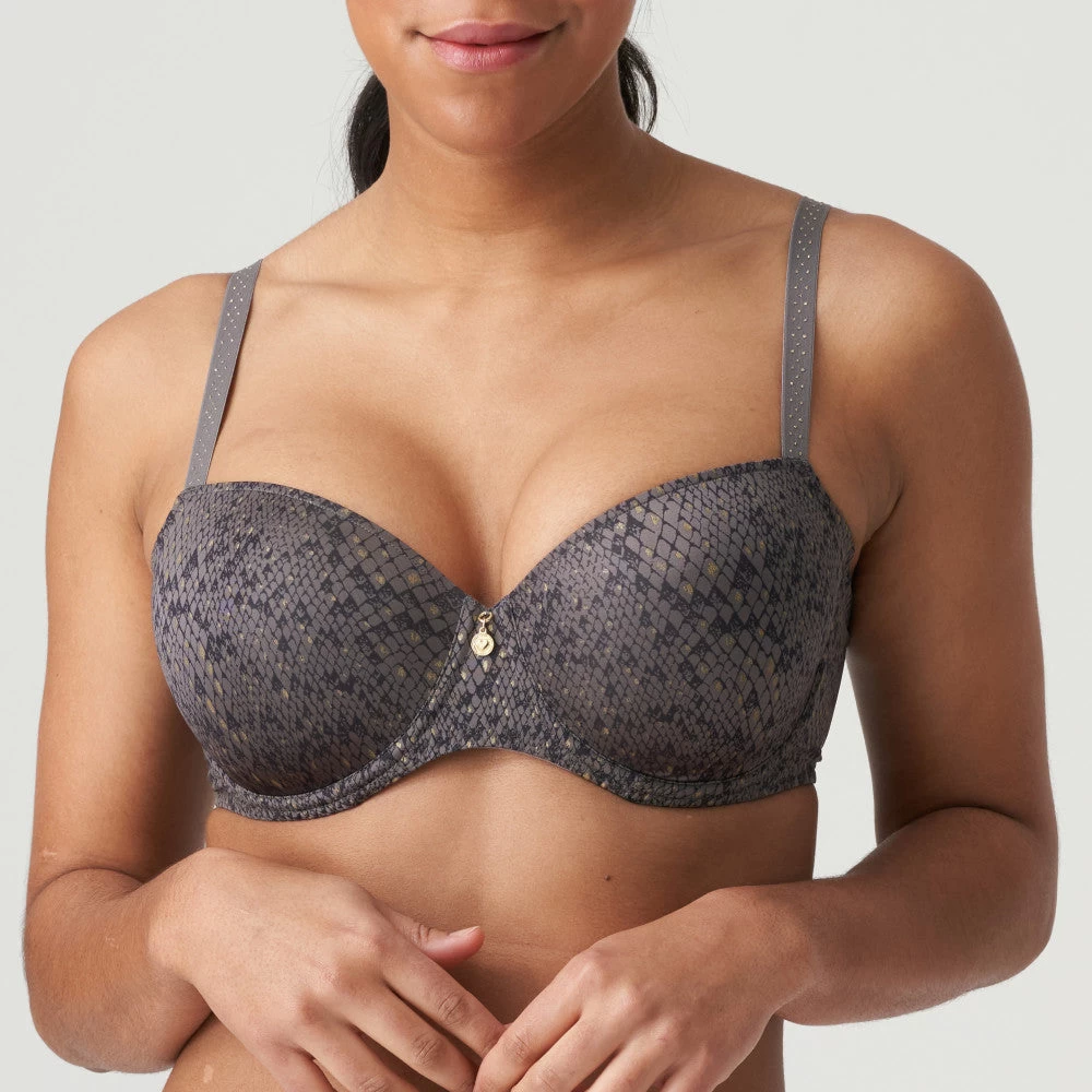 The Villemin Padded Balcony Bra from Prima Donna features a smooth snakeskin print with shimmer gold detailing. Very chic and fun for summer, perfect for a t-shirt bra with a difference!