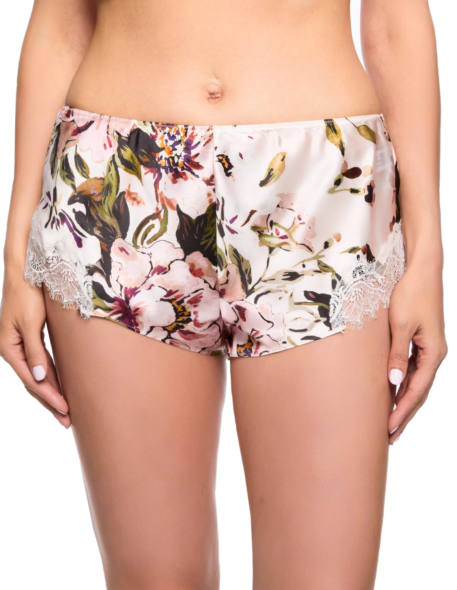 Australian luxury silk brand Sainted Sisters have created a truly beautiful pair of french knicker shorts. Silk satin feels luxuriously smooth against the skin, whilst the detailed eyelash lace trim adds femininity. These colourful silk shorts are perfect to wear the matching Scarlett camisole for a gorgeous set!Â
