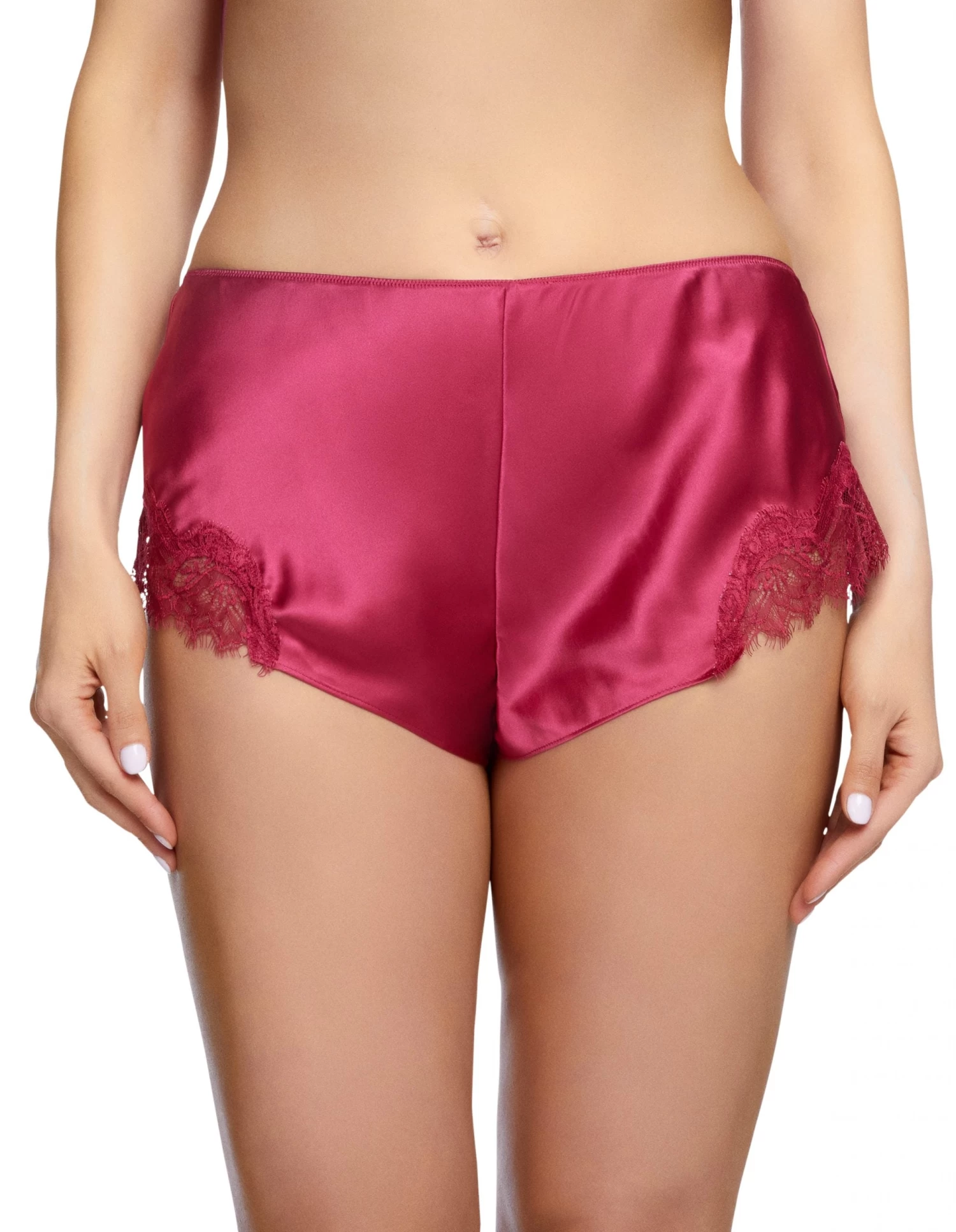 Australian luxury silk brand Sainted Sisters have created a truly beautiful pair of french knicker shorts. Silk satin feels luxuriously smooth against the skin, whilst the detailed eyelash lace trim adds femininity. These colourful silk shorts are perfect to wear the matching Scarlett camisole for a gorgeous set!Â