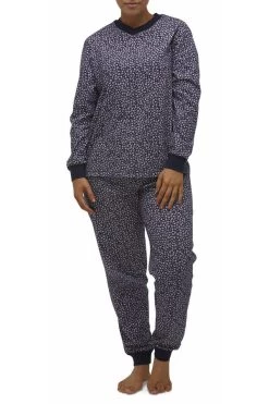 The Schrank Ditsy Ski Pyjama features a pretty pink floral print on either navy or white background. Â