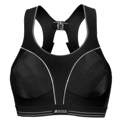 The Ultimate Run Sports bra from Shock Absorber is designed specifically for runners, but is perfect for wear during any high intensity exercise. It reduces bounce by almost 80%… without a wire! The inner and outer fabrics are designed to be soft against the skin, moisture wicking and breathable, with reflective tape on the outside for increased visibility in the dark. The adjustable straps are wide and comfortable to provide support, whilst the racerback design pulls the chest back and holds it in place.Â