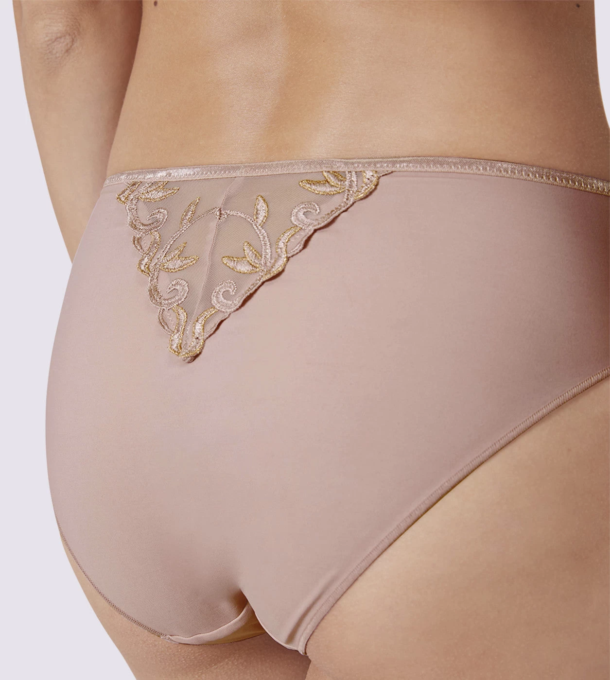 Back by popular demand, the Andora Culotte from Simone Perele is the perfect balance of chic retro style and comfort! The cut provides modest coverage, whilst the new finish gives a smoothing and sleek look. A triangular insert of Guipure lace at the back adds a beautiful touch. Wear with the Andora bra for a matching set!Â