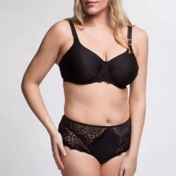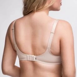 This fantastic bra celebrates your body. It’s made with smooth rigid cups offering extra support and making it the perfect minimiser. The fusion of two extremely soft fabrics ensures maximum comfort. This retro style will become your new favourite t-shirt bra under any colour choice. Back band and strap widths grow with cup size to support fuller busts. Pair with Caresse briefs for a matching set that is heavenly.Â