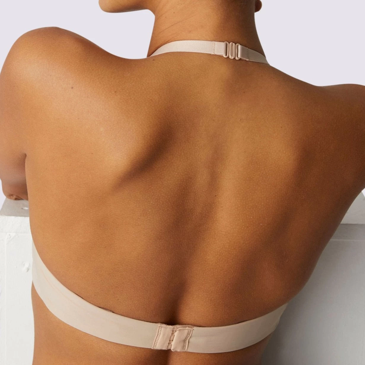 The Essential Multi-Position Moulded Bra is made from ultra soft knitted fabric with a feminine touch of tulle along the wings. Lined and moulded cups create an ultra smooth and natural bust shape while the adjustable multiway straps provide the versatility you need. Wear it as a halter-neck, crossover, or keep the straps straight to match any outfit. With invisible lining and a second-skin feel, its the perfect balance between elegant and functional