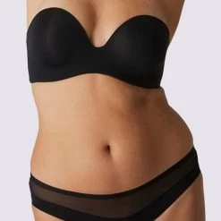 The Simone Perele Essentiel Strapless Plunge Bra is the perfect partner for your wardrobe. With a plunging neckline, soft yet supportive cups and removable multiway straps, it can be worn with a multitude of outfits as strapless, halter neck, cross over or straight. Â Featuring removable padding for A, B and C cups.
