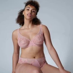 The luxurious Saga style has arrived in Verona Pink! The Saga Full Cup Plunge bra features a hint of vintage couture glam and the colour is the perfect tone for all seasons! A must have staple!Â