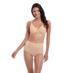 These Halo Lace Briefs are beautifully soft, made of a gorgeous floral lace fabric. A wide stretch waistband makes them infinitely comfortable, and flattering style lines enhance the body’s natural curves. Pair with a beautiful Halo Lace bra for the perfect matching set.Â